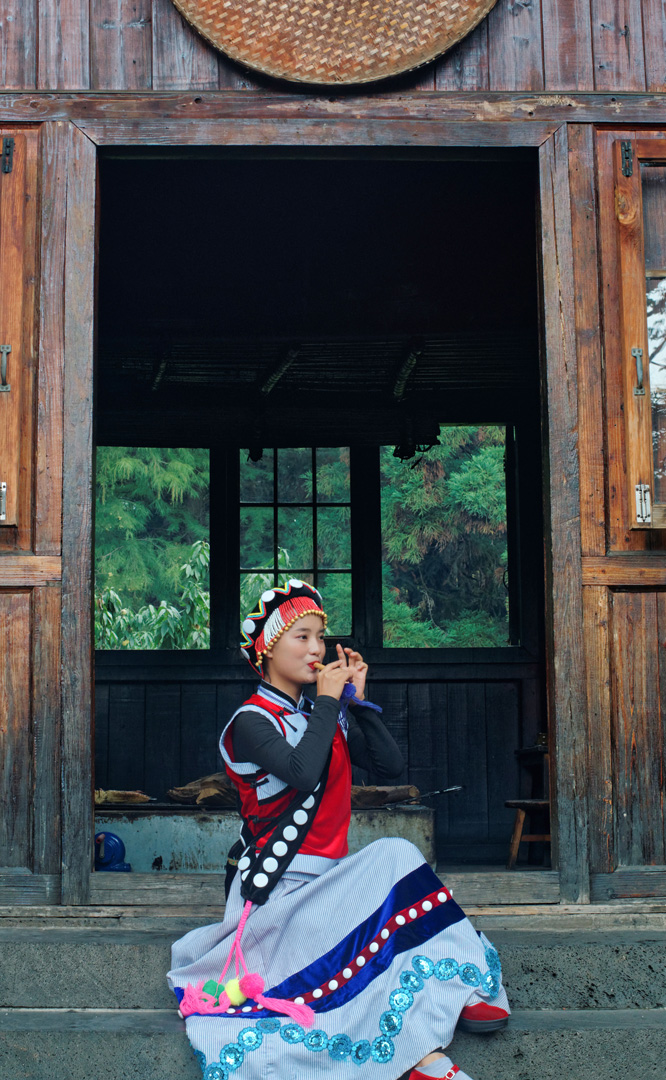 摩梭人是納西族的一個支系,多聚居在寧蒗縣永寧鄉的瀘沽湖畔,人口約8萬。摩梭民居就地取材,用圓木橫壘為墻,建成合院式寨樓居住,這類井干式建筑又稱木楞房,具有較好的御寒保溫性能,體現了順應自然的生態觀。摩梭人保留了母系大家庭的基本形態,呈現在您眼前的是一個完整的摩梭家庭的四合院,由正房、經堂、花樓、門樓等構成,正房坐北朝南,通稱祖母房。居住一家中最年長的女性,同時也是一大家人飲食、待客、議事的核心場所...